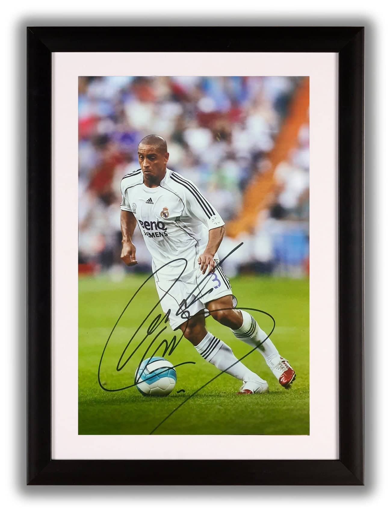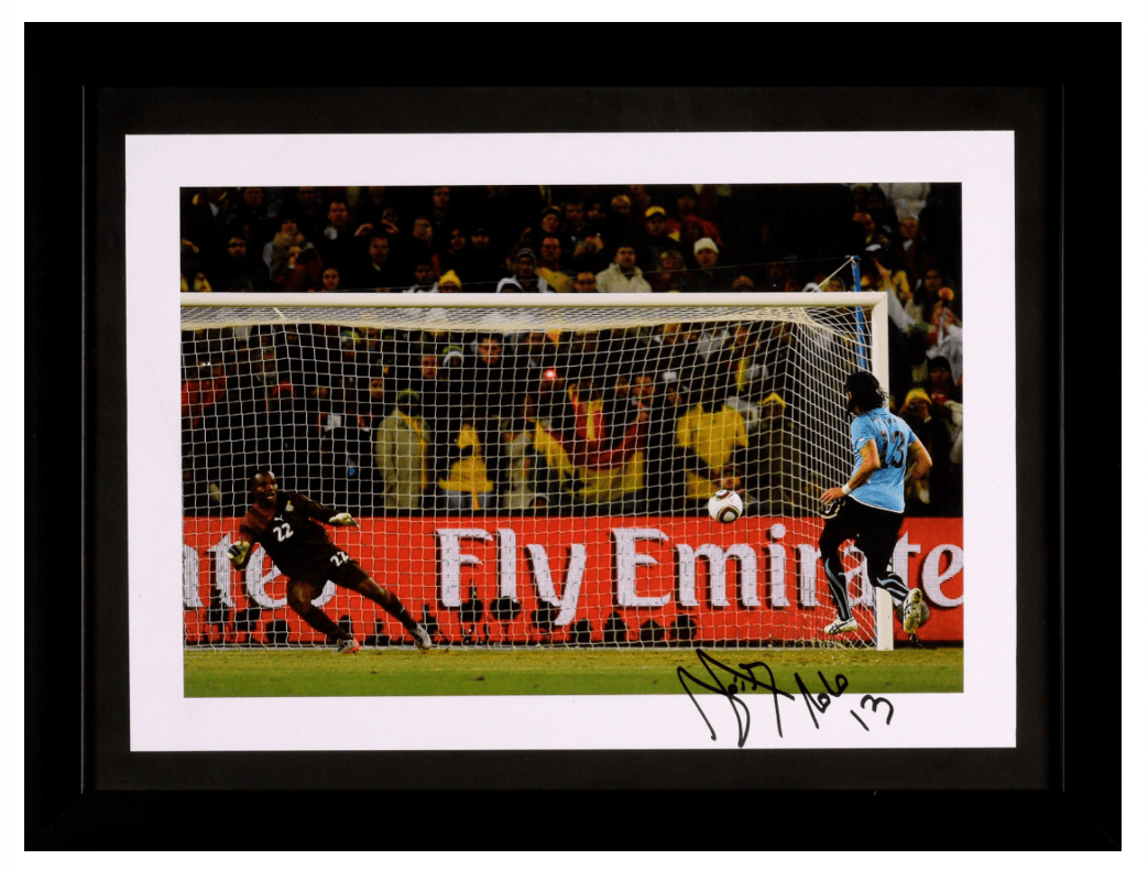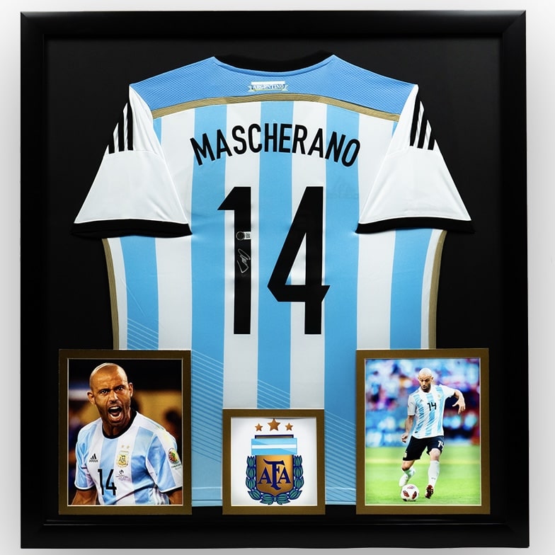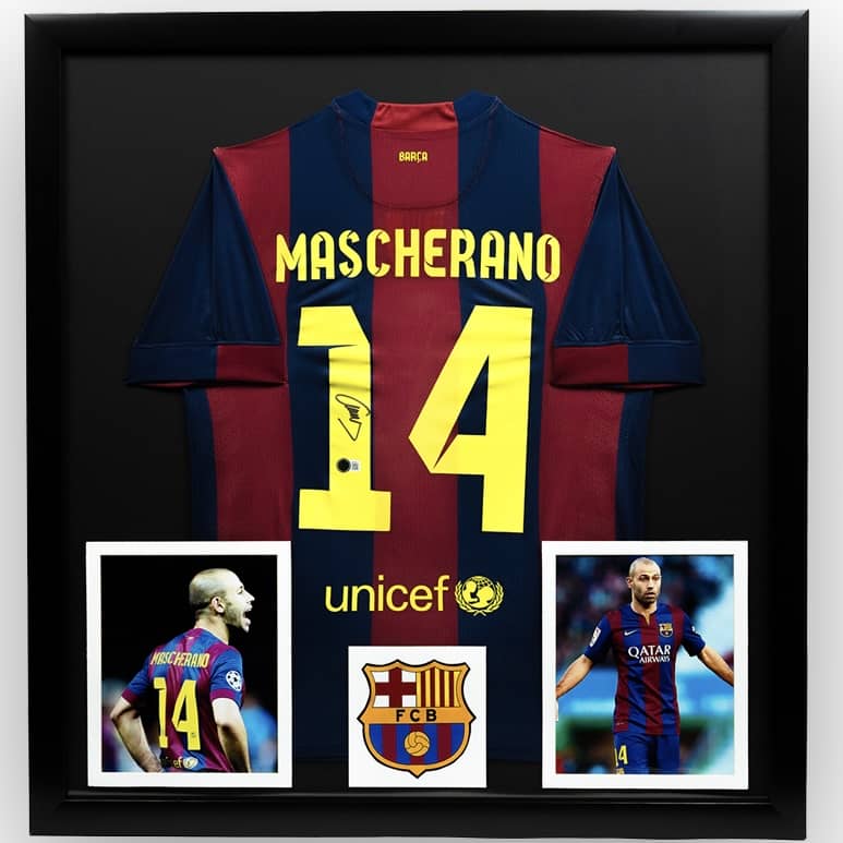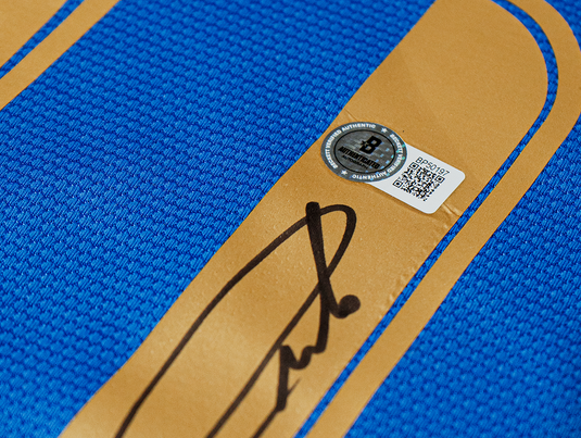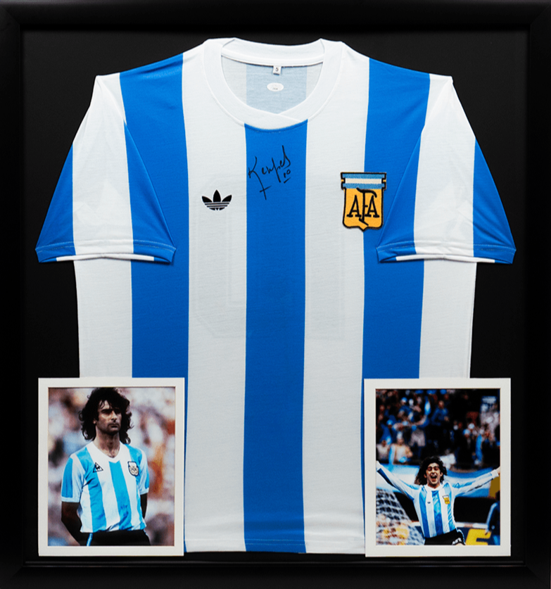 El marco incluye el jersey, dos fotos emblemáticas del jugador y tiene medidas de 1x1.