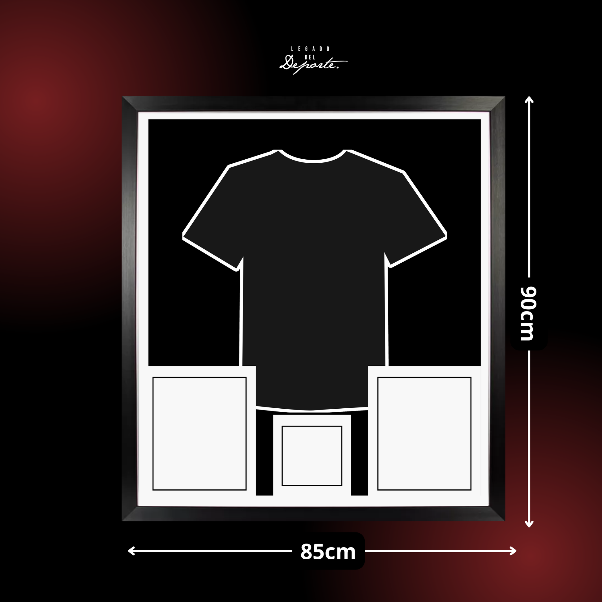 El marco incluye el jersey, dos fotos emblemáticas del jugador y tiene medidas de 1x1.